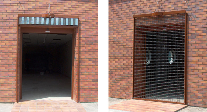 Az ún. “P” típusú rács emlékeztet a belső kirakatvédő biztonsági rács hagyományos típusára, tulajdonképpen annak erősebb, kültéren használható változata. Az időjárás viszontagságának kitett biztonsági rácsokat horganyzott felületvédelemmel látjuk el vagy rozsdamentes anyagból készítjük, mindkét esetben 6 mm átmérőjű rozsda- és saválló hordozórudakkal. A külső biztonsági rács a MABISZ minősítése szerint részleges mechanikai védelem biztosítására alkalmas.